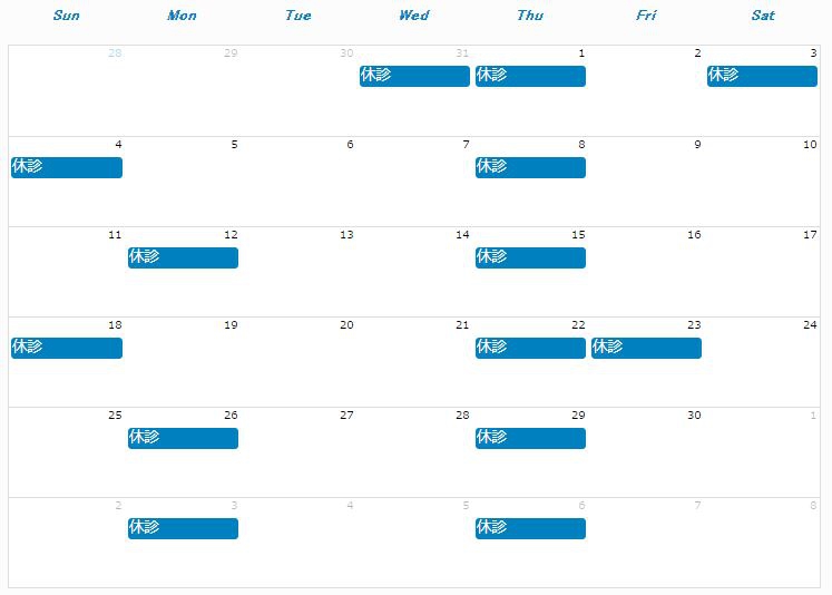 11月は、矯正学会があるため休診が多くなっております。