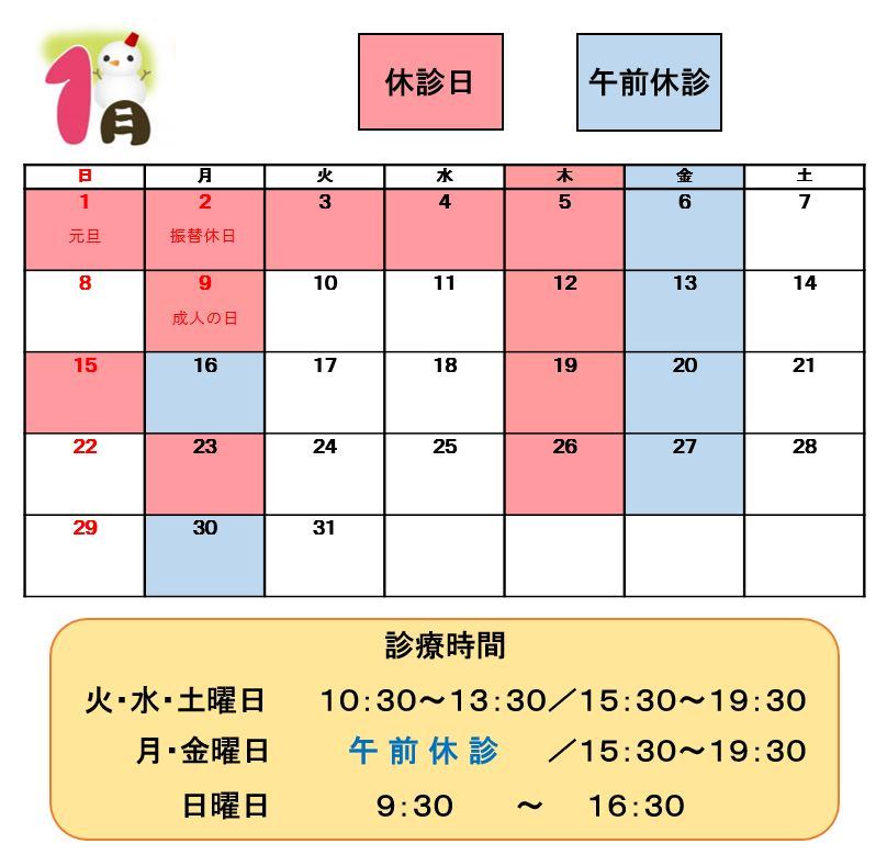 さて、1月の診療日についてです。