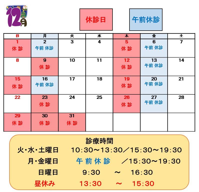 さて、12月の診療日についてです。