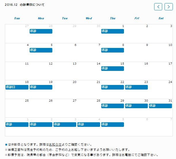 2016.11.15 / 診療日について 12月の診療日について こんにちは! MOTO矯正歯科です☆ 街はだんだんクリスマスモードですね(*^_^*) 12月の診療日を更新しましたので 当院にお越し際はご確認下さいませ(^^♪