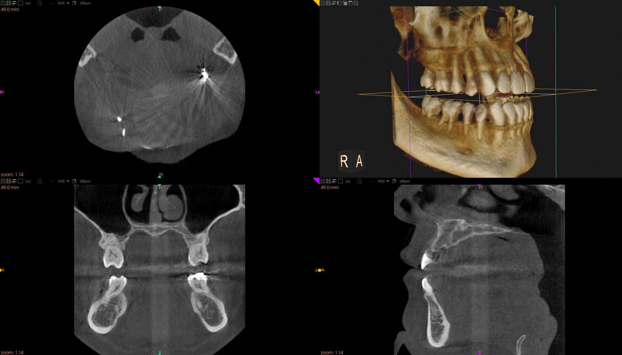 断層撮影した画像を最薄0,076mmの幅でスライスすることができます。歯の根っこや埋伏歯(骨の中に隠れている歯)、また骨の状態をより詳細に確認することができるようになるなど、これまで一般のレントゲンで見えなかった部分が、容易に確認できます。