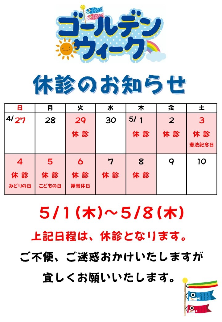 8月の休診日に関してお知らせです!!