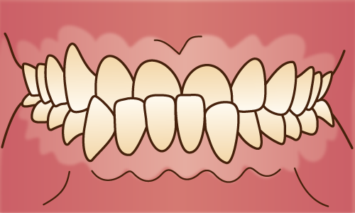 正面から見たときに、上の歯が下の歯を半分以上隠している、または全く見えない場合を