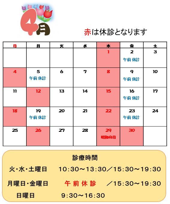 さて、4月の診療日についてです(∩˃o˂∩)